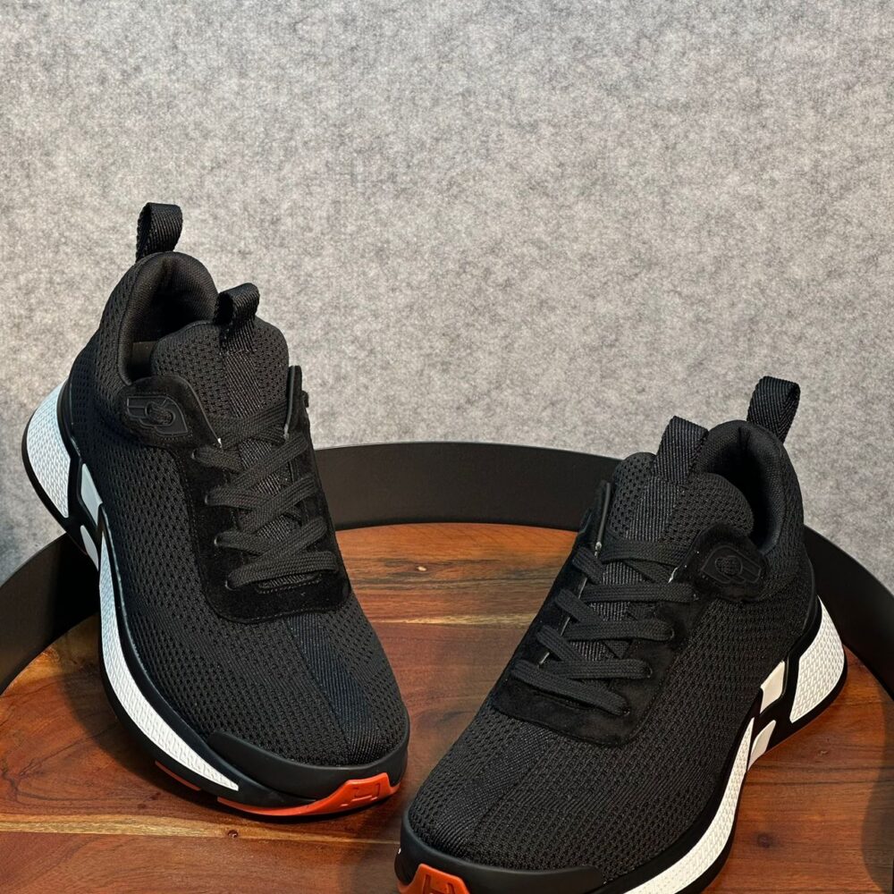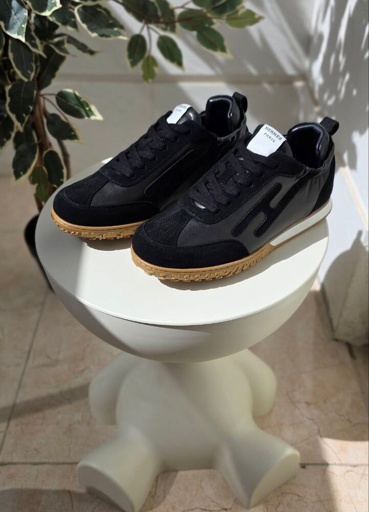 Luxury black leather sneaker with a bold chunky sole and signature Hermès detailing.