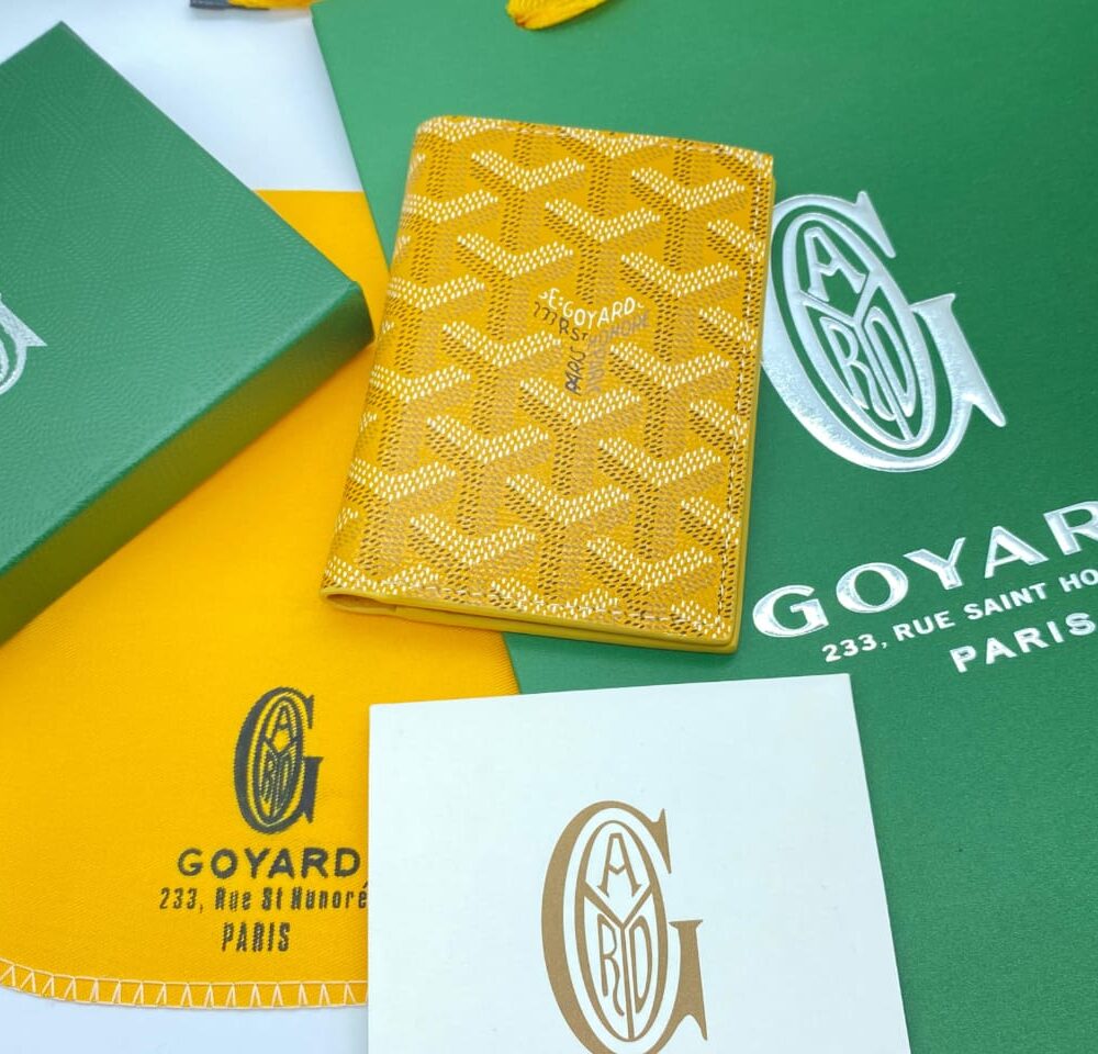 Yellow Goyard monogram wallet with a slim, stylish, and luxurious design.