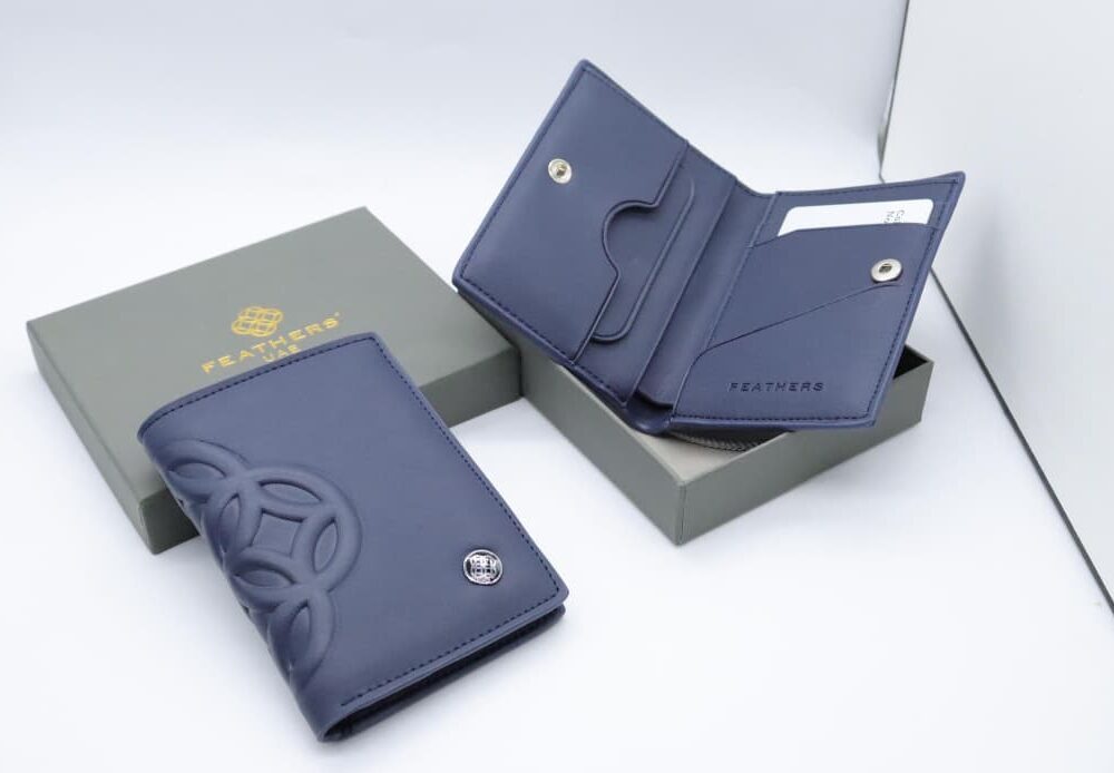 Feathers UAE Navy Blue Snap-Closure Leather Wallet