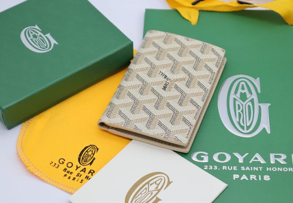 Beige Goyard monogram wallet with a clean, timeless, and elegant luxury style.