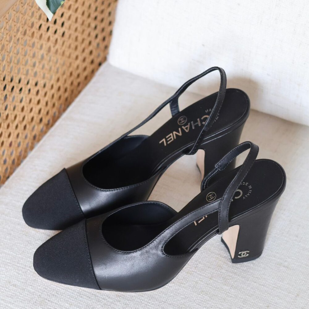 Chanel Two-Tone Slingback Pumps – All Black Calfskin
