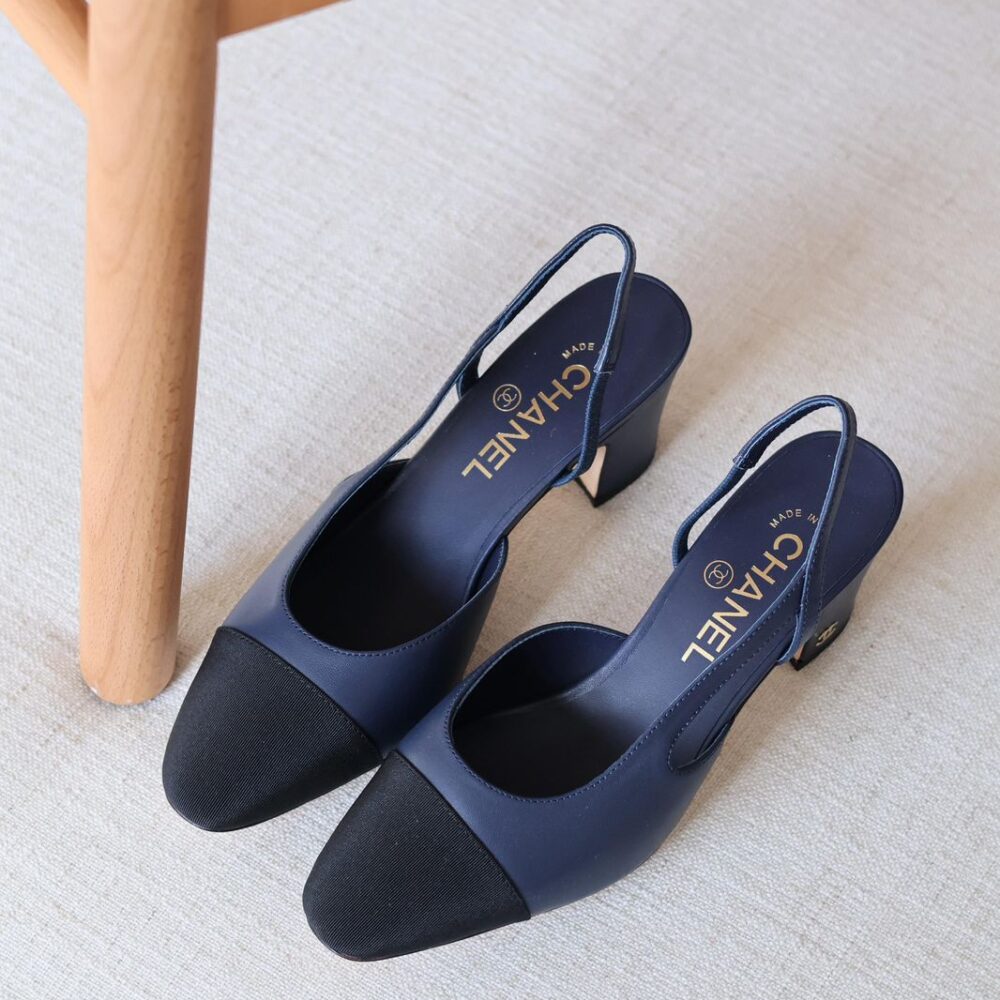 Chanel Two-Tone Slingback Pumps – Navy & Black Calfskin