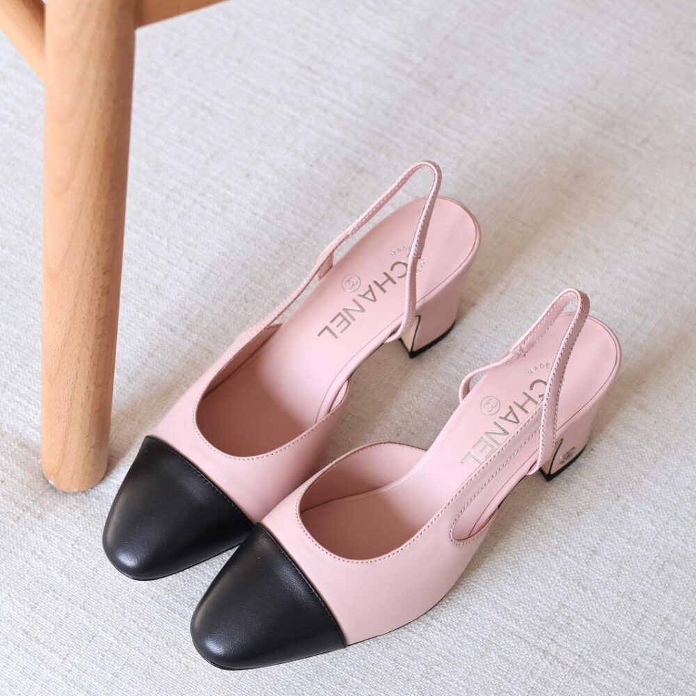Chanel Two-Tone Slingback Pumps – Blush Pink & Black Calfskin