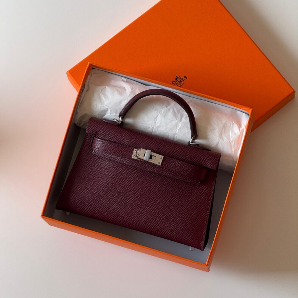 Hermès Kelly Mini II (Kelly 20) in Epsom Leather – Bordeaux with Palladium Hardware