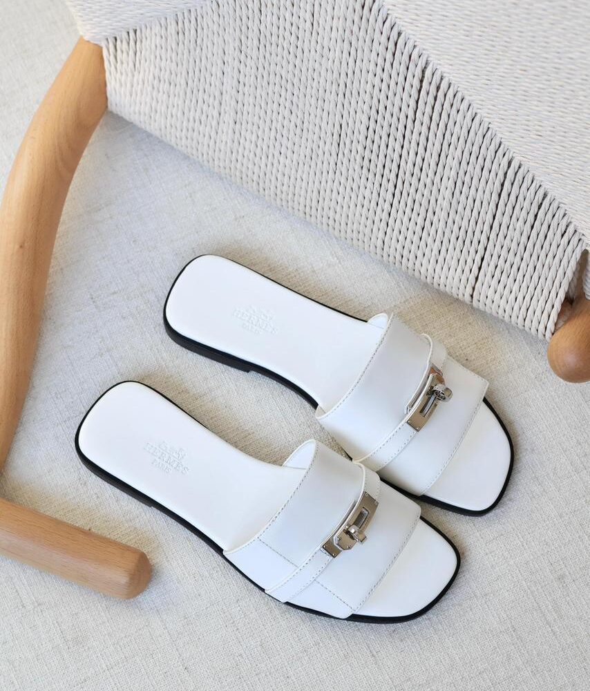 A contemporary "techno-sandal" featuring a comfortable anatomical sole and the iconic Hermès gold-tone or palladium Kelly buckle on the strap.