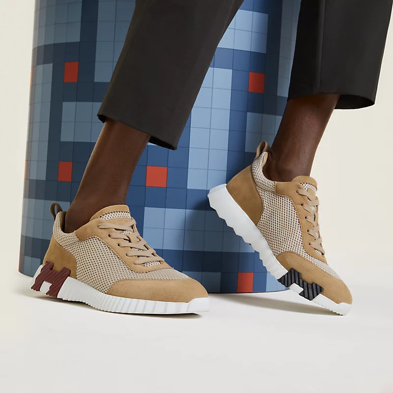 Sneaker in graphic mesh and suede goatskin.