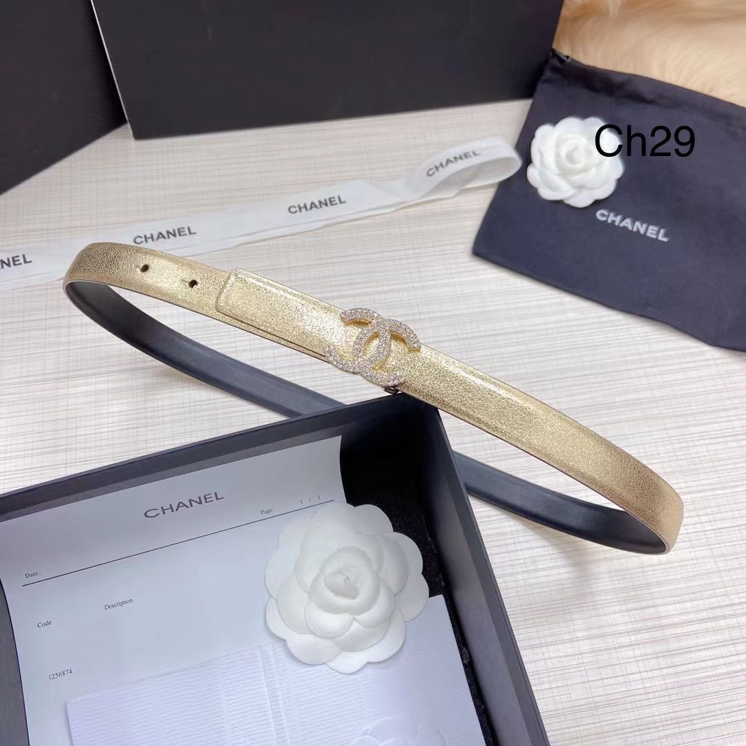 : Luxurious Chanel belt featuring a shimmering gold metallic finish and a crystal-embellished CC logo buckle, designed to elevate any outfit with a touch of elegance.