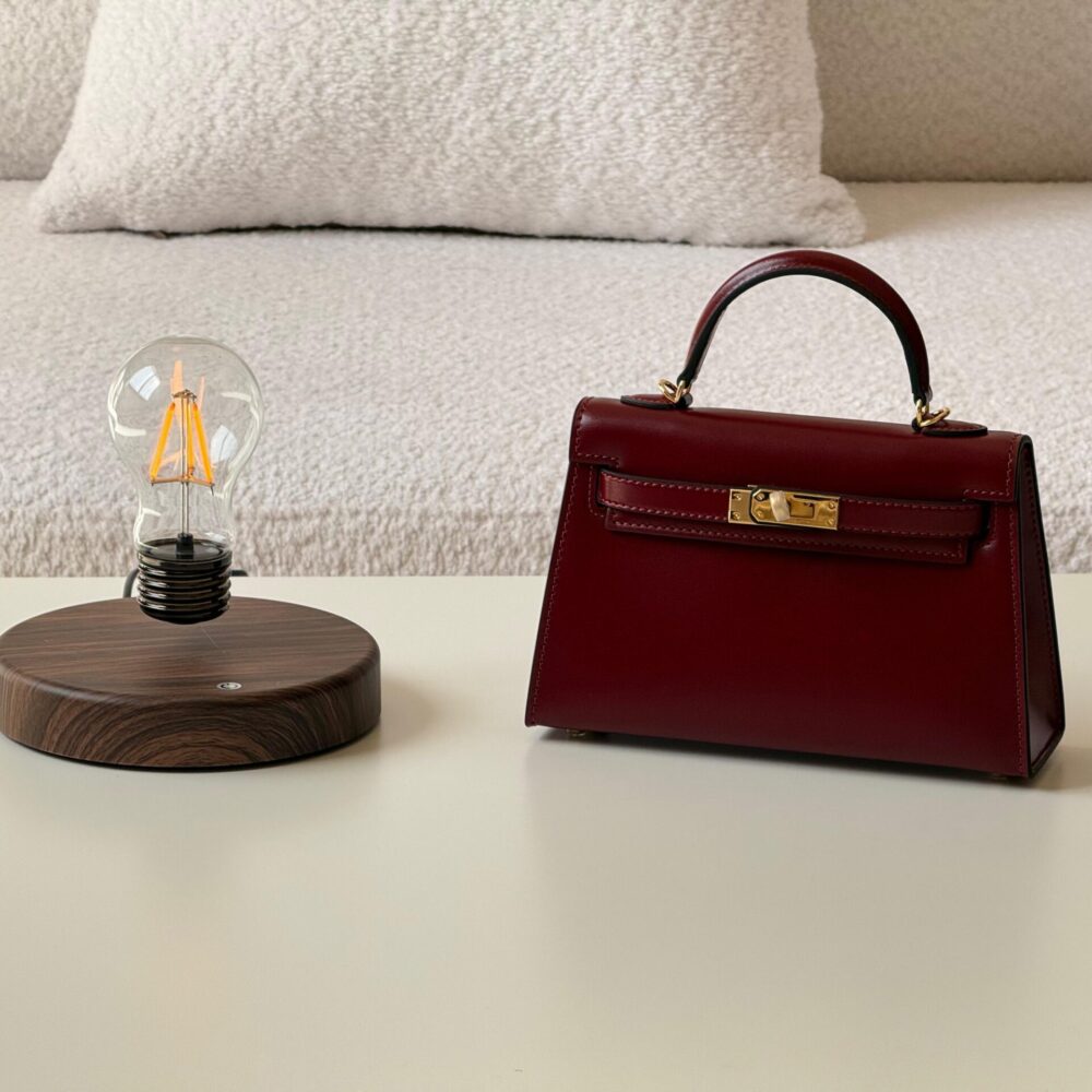 A refined structured handbag in a rich tan shade, crafted from textured leather with precise stitching and a polished gold-tone turn-lock closure. Featuring sturdy top handles and a clean, elegant silhouette, this bag is perfect for both everyday sophistication and elevated occasions.