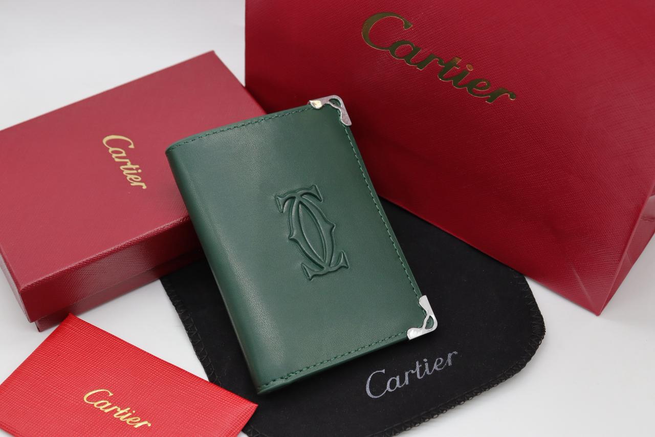 A refined bifold wallet crafted from smooth green leather, highlighted by an embossed front logo and polished metal corner protectors. Slim and elegant, it offers well-organized card slots and a dedicated bill compartment, combining everyday practicality with a luxurious, modern look.