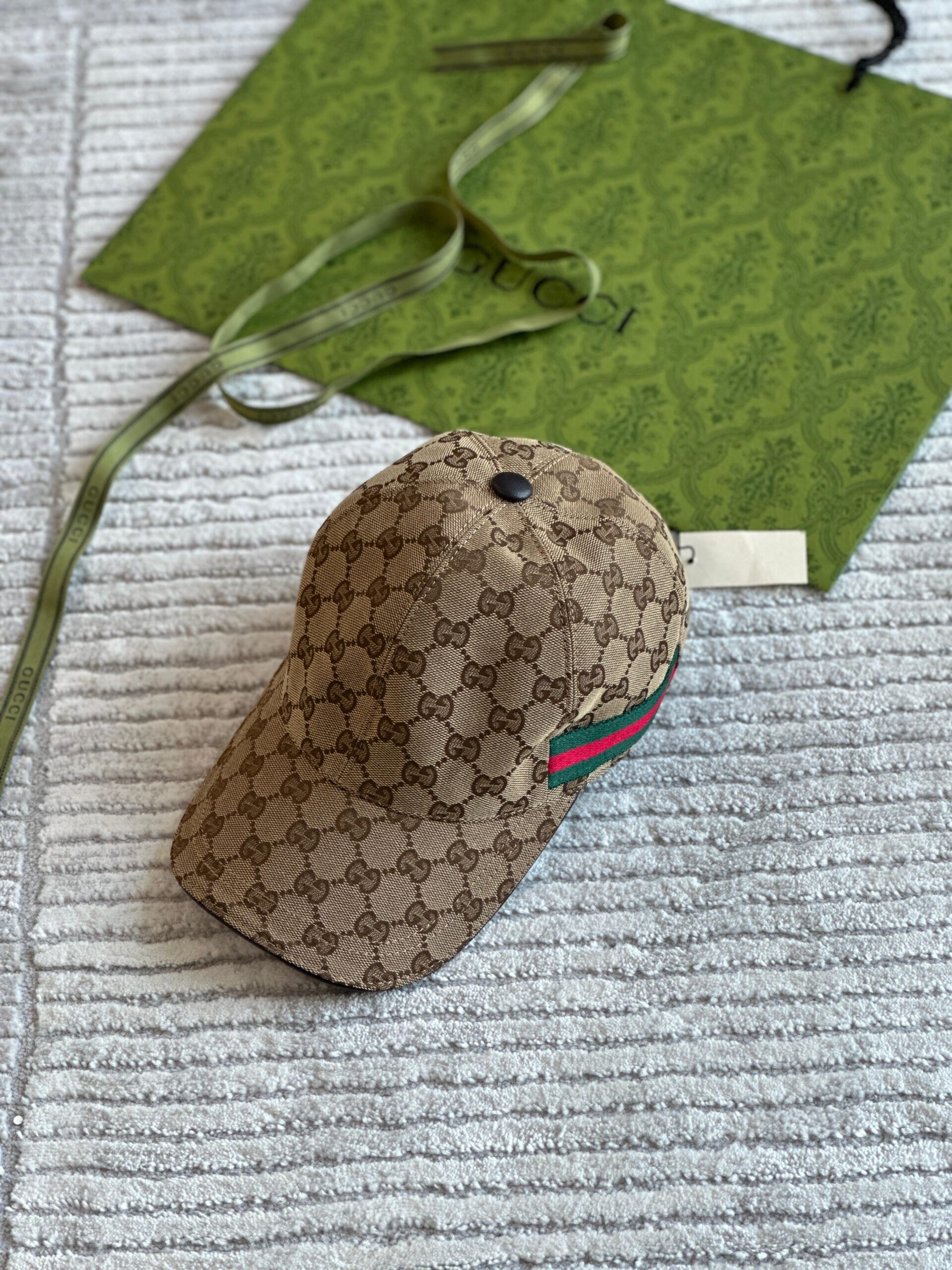 Gucci GG Monogram Canvas Baseball Cap with Web Stripe – Beige