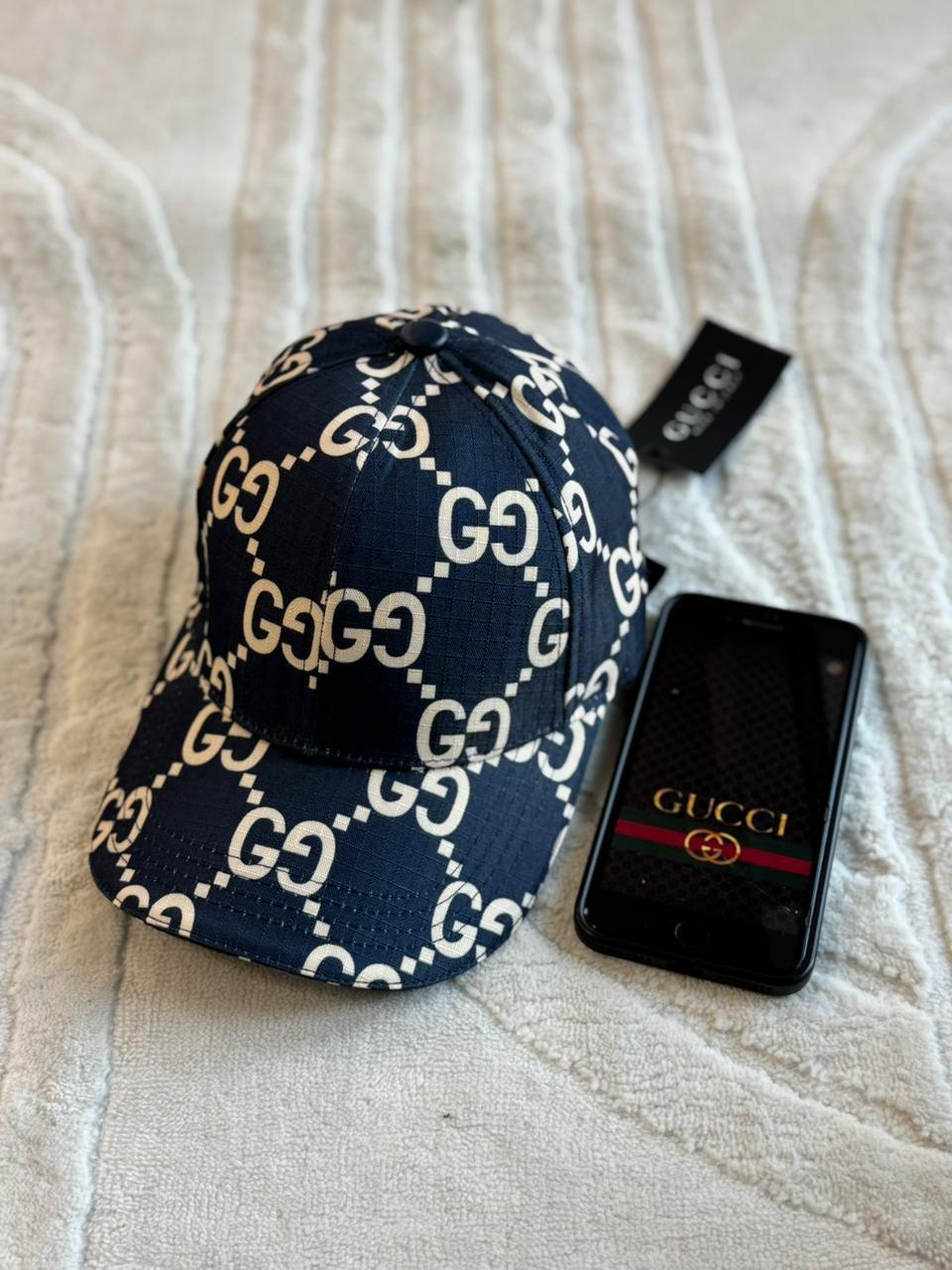 This Gucci baseball cap features the iconic GG Supreme monogram in a striking navy blue and off-white colorway. Designed with a classic six-panel construction and a curved brim, it offers a refined yet sporty silhouette. Crafted from durable coated canvas, the cap delivers comfort and long-lasting wear, while the adjustable back closure ensures a secure, customized fit. A versatile luxury accessory that adds a bold designer statement to everyday casual looks.