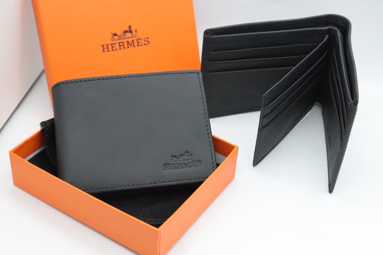An elegant bi-fold wallet crafted in smooth premium leather, showcasing Hermès’ timeless luxury and minimalist design. Featuring multiple card slots and bill compartments, it offers refined organization while maintaining a slim, sophisticated profile. Finished with the iconic Hermès logo and presented in the signature orange box.