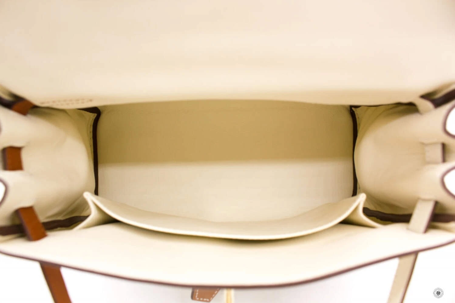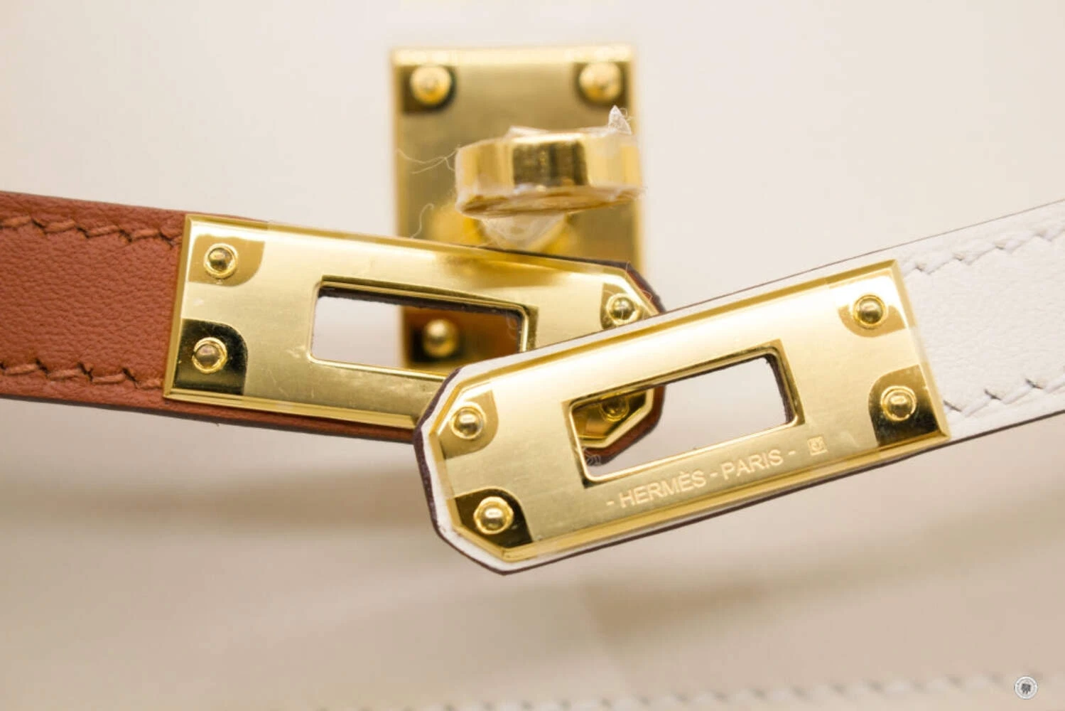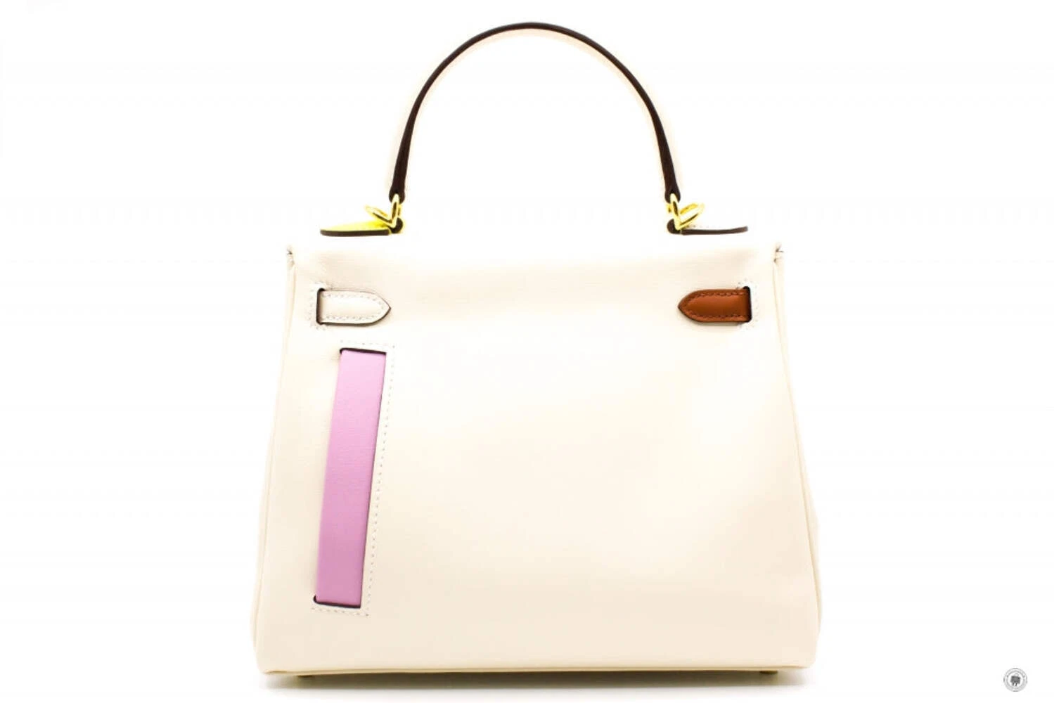 The Hermès Kelly Colormatic handbag in white and tan is a refined expression of timeless luxury with a modern twist. Crafted from premium leather, it showcases the iconic Kelly silhouette with a structured top handle, detachable shoulder strap, and signature turn-lock closure in gold-tone hardware. The contrasting tan front zip pocket and strap detail add visual depth and functionality, making this elegant piece suitable for both daytime sophistication and elevated evening wear.
