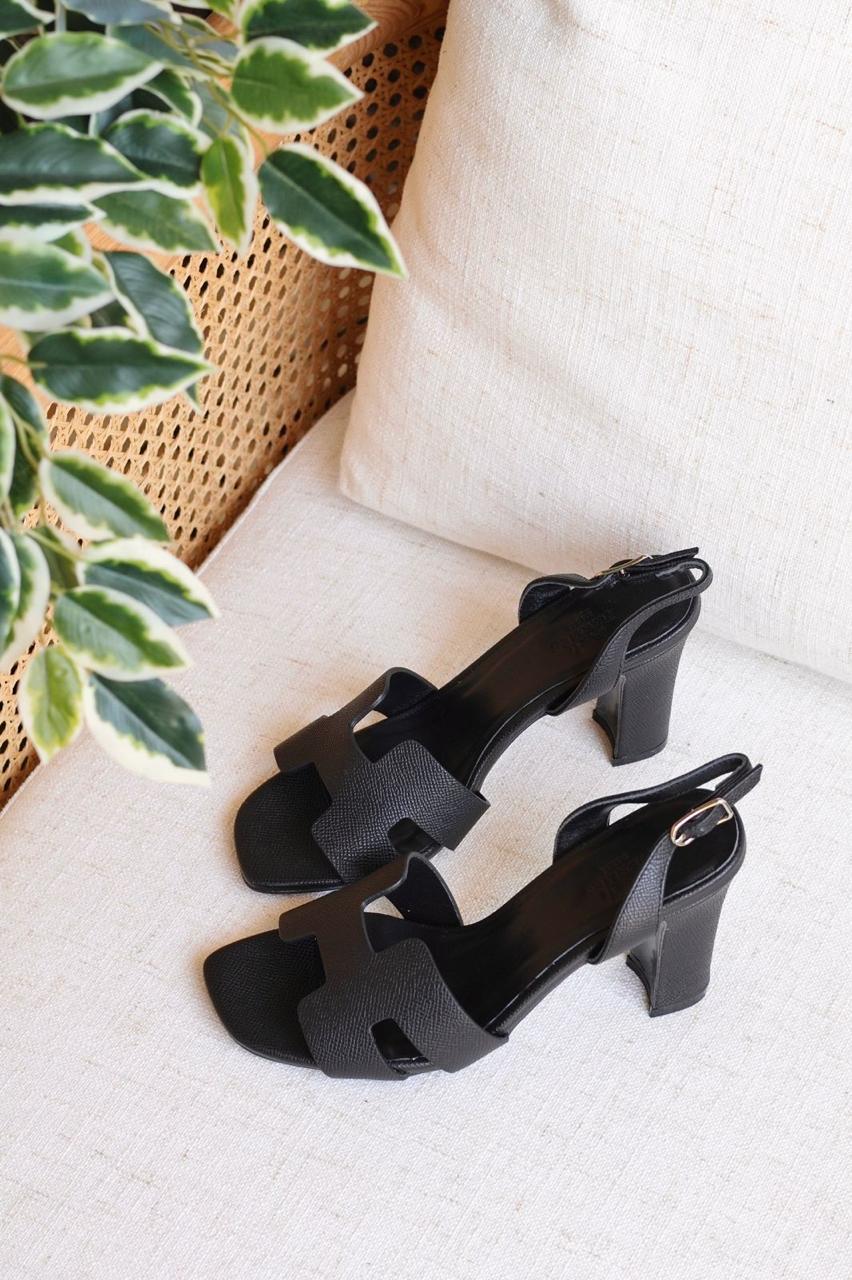 The Hermès Legend heel sandals showcase the House’s iconic design language with a refined, feminine silhouette. Crafted from textured leather, the sandals feature the signature “H” cut-out strap across the toe, paired with an adjustable slingback strap finished with discreet metallic hardware. Set on a sturdy mid block heel, this elegant design offers both comfort and stability, making it suitable for all-day wear while maintaining a polished, timeless look.
