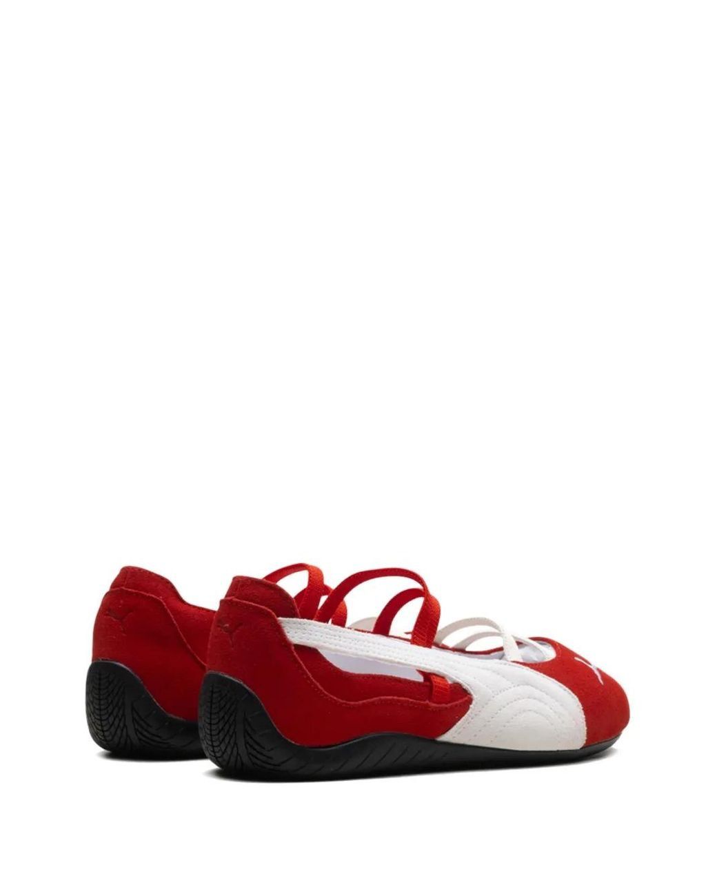 The Puma Speedcat Ballet SD ‘For All Time Red’ brings iconic motorsport heritage into a bold lifestyle sneaker. Built with a sleek, low-profile silhouette inspired by classic racing shoes, this version features a vibrant red upper crafted from premium materials for style and durability. The signature Speedcat design delivers a snug, glove-like fit, while the slim rubber sole ensures responsive, ground-hugging traction. Finished with subtle branding details and a refined aesthetic, these sneakers perfectly blend performance roots with everyday wearability.